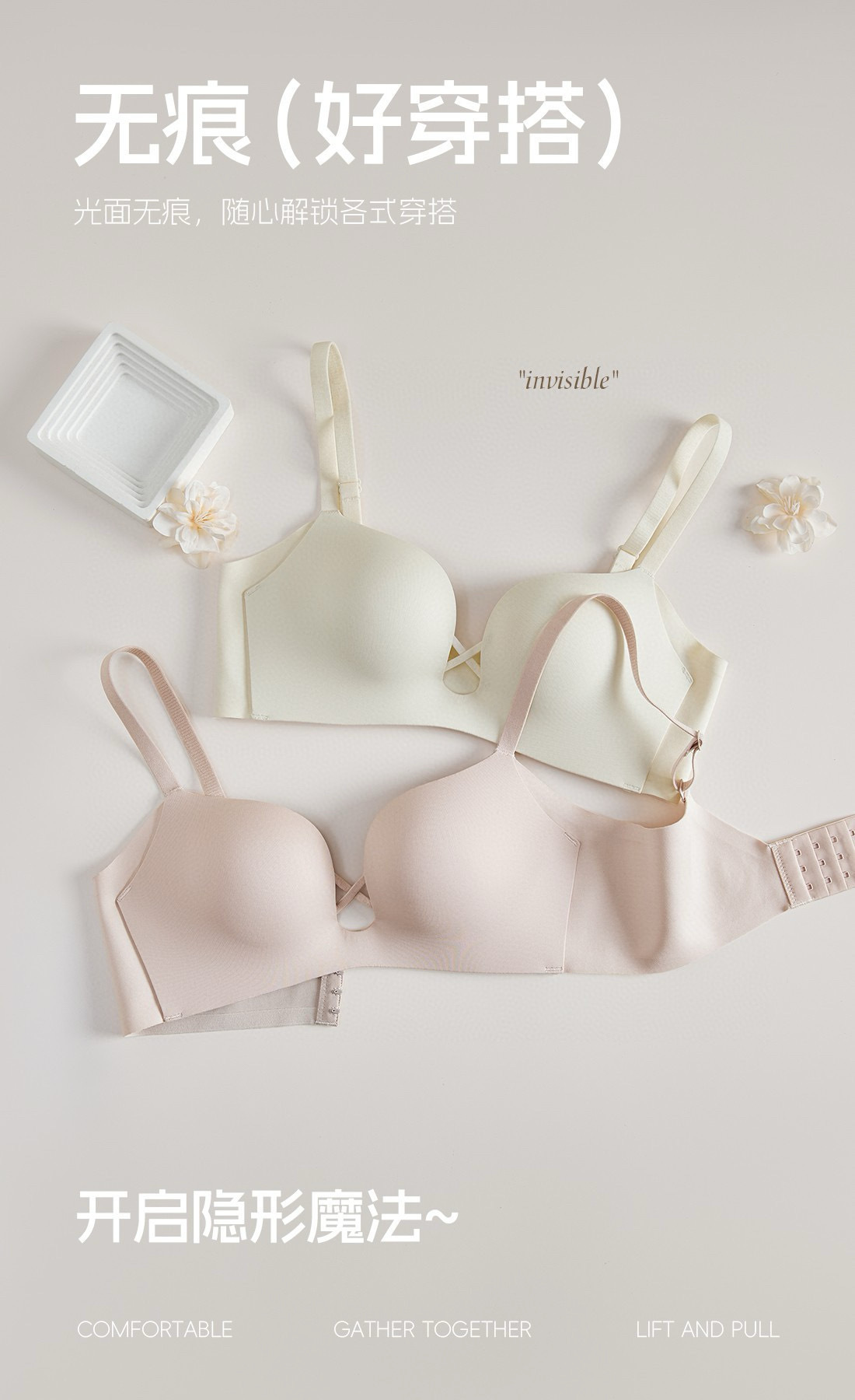 新製品、セクシーな下着、少女、調整型、つやのある面、ノーワイヤ、跡がなく、一片式薄いブラ
